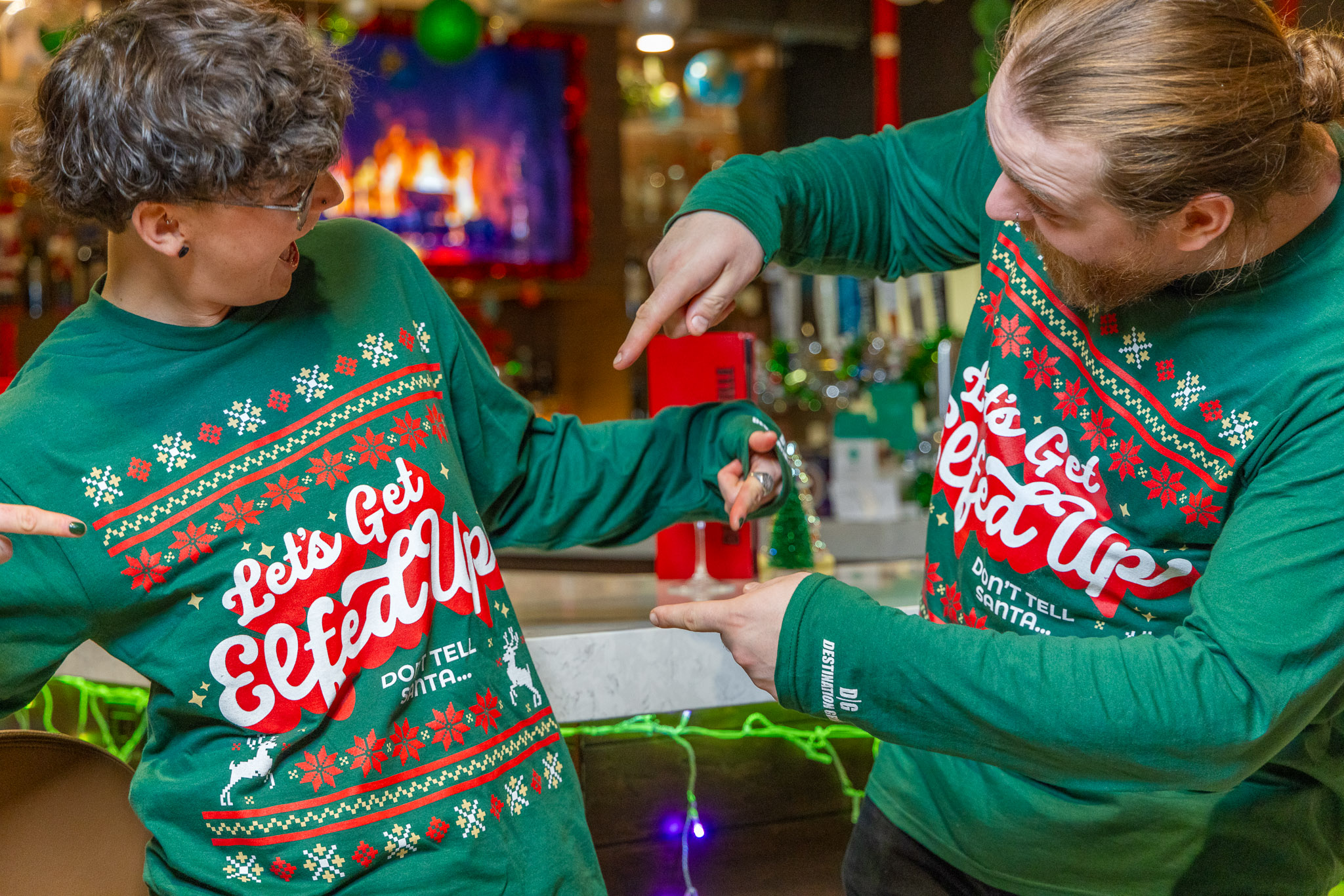Add to the holiday cheer with festive souvenir shirts! This themed long sleeve is comfortable, stylish, and the perfect way to celebrate the season. Available exclusively at Destination Grille.